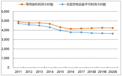 2018-2019 年發電設備利用率有望逐年改善, 2020 年小幅回落。 2014 年以來等效火電裝機和時間加權等效火電裝機增速均高于發電量增速,發電設備利用率逐年降低。 2017 年底等效火電裝機容量 15.7 億千瓦,同比增速 5.3%,時間加權同比增速 6.3%,低于發電量增速 6.5%,發電設備利用率開始改善。根據我們電力供應預測數據測算得到,2018-2020 年時間加權等效火電裝機增速分別為 5.1%、 5.1%、 5.7%,發電量增速分別為 5.9%、 5.8%、 5.6%。因此,2018-2019 年發電設備利用率料將較 2017 年逐年改善, 2020 年或將在 2019 年的基礎上小幅回落。