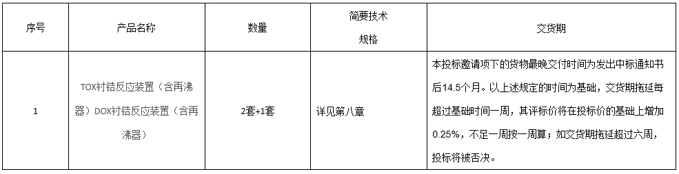 1.1 項目概況:TOX襯鋯反應裝置(含再沸器)DOX襯鋯反應裝置(含再沸器) 2套+1套 (詳見招標技術文件)