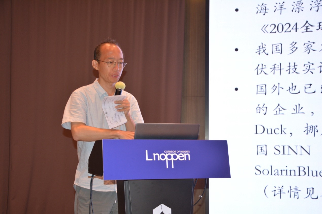 交通運輸部天津水運工程科學研究院博士趙旭發表了題為《馭光向海,風光無限:一種可快速部署的折疊型海上漂浮式光伏解決方案TK-FFPV》的演講,分享了一種可灌輸部署的折疊平臺上漂浮式光伏解決方案TK-FFPV,并介紹了海上漂浮光伏的發展和挑戰。