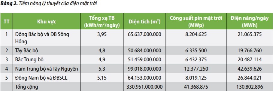 越南是一個年度太陽輻射量大而穩定的地區,特別是在中部高地,中部海岸和南部以及湄公河三角洲地區。平均而言,太陽輻射為每天4-5kW / ㎡。根據評估,每小時1800小時陽光充足的地區被認為有潛力開發。對越南而言,這一標準適用于許多地區,特別是南方省份。越南太陽能的理論潛力估計如下: