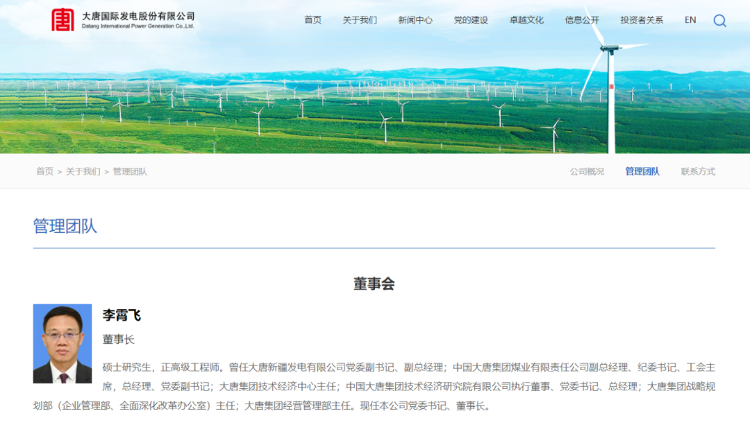 李霄飛,碩士研究生,正高級工程師。曾任大唐新疆發(fā)電有限公司黨委副書記、副總經理;中國大唐集團煤業(yè)有限責任公司副總經理、紀委書記、工會主席,總經理、黨委副書記;大唐集團技術經濟中心主任;中國大唐集團技術經濟研究院有限公司執(zhí)行董事、黨委書記、總經理;大唐集團戰(zhàn)略規(guī)劃部(企業(yè)管理部、全面深化改革辦公室)主任;大唐集團經營管理部主任。現任大唐國際黨委書記、董事長。