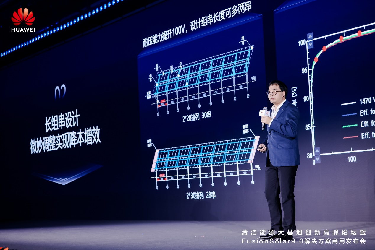以“重構價值,打造高質量大基地更優解”為主題的清潔能源大基地創新高峰論壇暨FusionSolar9.0解決方案商用發布會在北京成功舉辦。會上,華為數字能源正式商用發布了FusionSolar9.0電站智能光伏解決方案,以技術創新為全球清潔能源大基地提供投資收益、電網穩定、智能營維、安全可靠四大維度的更優解,并與業界專家共同探討轉型期清潔能源大基地建設的最優模式,為產業高質量、可持續發展貢獻力量。