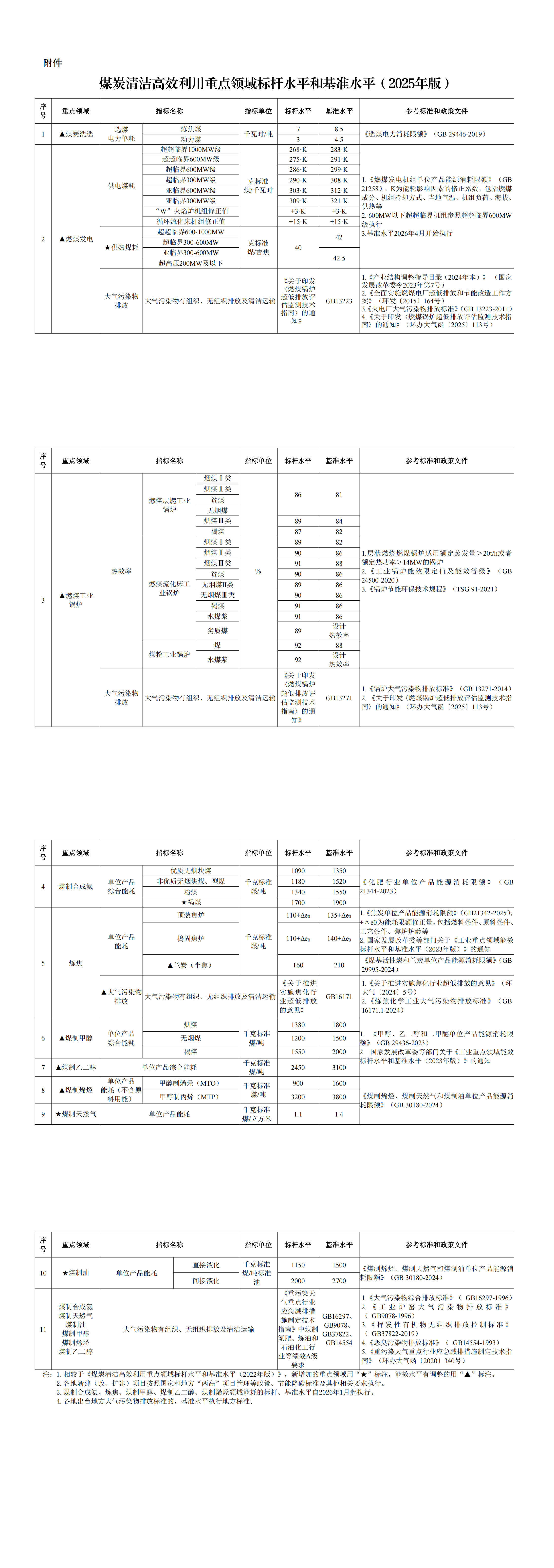 為貫徹落實黨中央、國務院決策部署,推動煤炭產業由低端向高端、煤炭產品由初級燃料向高價值產品攀升,按照《國家發展改革委等部門關于加強煤炭清潔高效利用的意見》(發改運行〔2024〕1345號),經商有關方面,現發布《煤炭清潔高效利用重點領域標桿水平和基準水平(2025年版)》,并就有關事項通知如下。