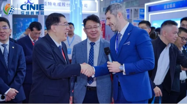 展臺(tái)特設(shè)專(zhuān)題展區(qū),回顧了俄中兩國(guó)在原子能、核醫(yī)學(xué)及物流領(lǐng)域長(zhǎng)達(dá)75年的合作歷程。中國(guó)能源研究會(huì)理事長(zhǎng)史玉波率展會(huì)主辦方代表團(tuán)參觀(guān)了俄羅斯國(guó)家原子能公司展臺(tái)。
