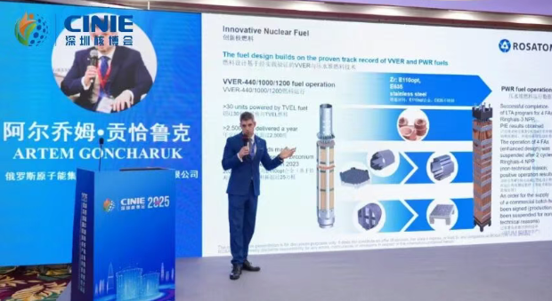 俄羅斯國(guó)家原子能公司應(yīng)邀參展。公司展臺(tái)的核心展品是一個(gè)互動(dòng)展示柱,重點(diǎn)推介了采用優(yōu)質(zhì)材料和尖端技術(shù)解決方案的俄羅斯核燃料創(chuàng)新成果一一方型燃料組件(適用于西方設(shè)計(jì)核反應(yīng)堆的燃料組件)。
