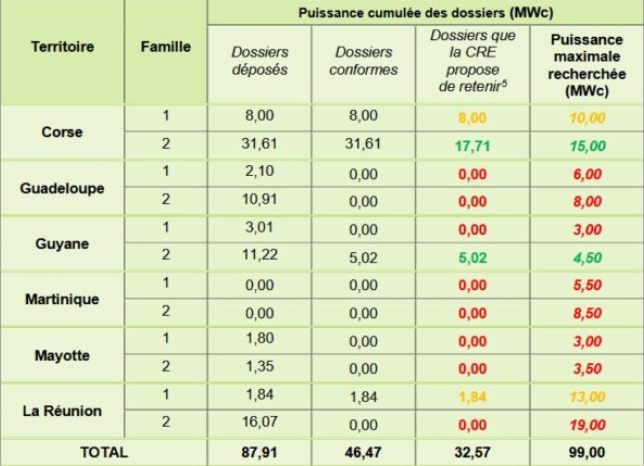 五個(gè)中標(biāo)項(xiàng)目分別位于法國的海外領(lǐng)土及科西嘉島。其中,阿庫奧能源公司位于科西嘉島阿萊里亞的弗拉索內(nèi)項(xiàng)目獲得了17.7兆瓦的容量,為最大中標(biāo)項(xiàng)目。其他中標(biāo)者包括索萊爾通用公司、沃爾塔利亞公司及阿爾比奧馬印度洋太陽能公司等,項(xiàng)目地點(diǎn)分布于科西嘉島、法屬圭亞那和留尼汪島。