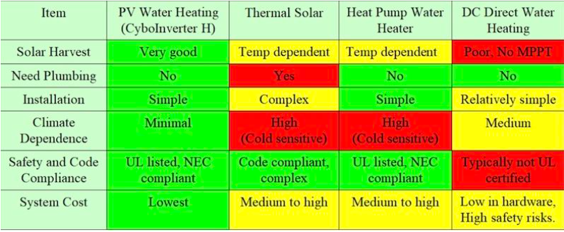 CyboInverter H型號(hào)能將電熱水器轉(zhuǎn)變?yōu)樘?yáng)能儲(chǔ)存系統(tǒng),無(wú)需電池、管道或維護(hù)。如圖所示,該系統(tǒng)由多個(gè)太陽(yáng)能電池板和CyboInverter H組成,直接將太陽(yáng)能輸送到熱水器下部加熱元件,設(shè)定較高溫度,確保上部元件僅在大量用水時(shí)激活電網(wǎng)電力。光伏熱水系統(tǒng)相比傳統(tǒng)熱太陽(yáng)能系統(tǒng),具有簡(jiǎn)單、清潔、安全和免維護(hù)優(yōu)勢(shì)。