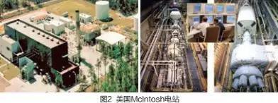 第二座是于1991 年投入商業(yè)運行的美國McIntosh 電站(圖2)。其儲氣洞穴在地下450 米,總容積達5.6×105m3,儲氣壓力約為75bar。該電站壓縮機功率為50MW,膨脹機功率為110MW,可實現(xiàn)連續(xù)41 小時充氣和26 小時發(fā)電,機組從啟動到滿負荷約需9 分鐘, 系統(tǒng)效率為54%。另外,日本于2001 年在北海道空知郡投運了上砂川町2MW 壓縮空氣儲能示范項目。其余國家如瑞士、法國、英國、意大利、俄羅斯、以色列、芬蘭、南非和韓國等國家也在積極開發(fā)壓縮空氣儲能電站。