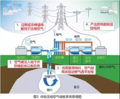 但傳統(tǒng)壓縮空氣儲能系統(tǒng)存在三個技術瓶頸,一是依賴天然氣等化石燃料提供熱源,不適合我國這類“缺油少氣”的國家;二是需要特殊地理條件建造大型儲氣室,如高氣密性的巖石洞穴、鹽洞、廢棄礦井等;三是系統(tǒng)效率較低(分別為42%、54%),需進一步提高。