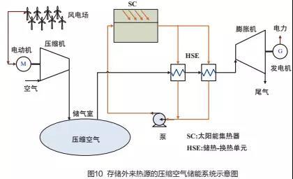 壓縮空氣儲能系統(tǒng)可以利用外界熱源來提升空氣做功發(fā)電能力,提高系統(tǒng)整體效率。其可利用的熱源包括太陽能熱利用,工業(yè)企業(yè)如冶金、化工、水泥、玻璃等行業(yè)的余熱廢熱,核電等發(fā)電廠的余熱,生物質制取的沼氣、合成氣等。