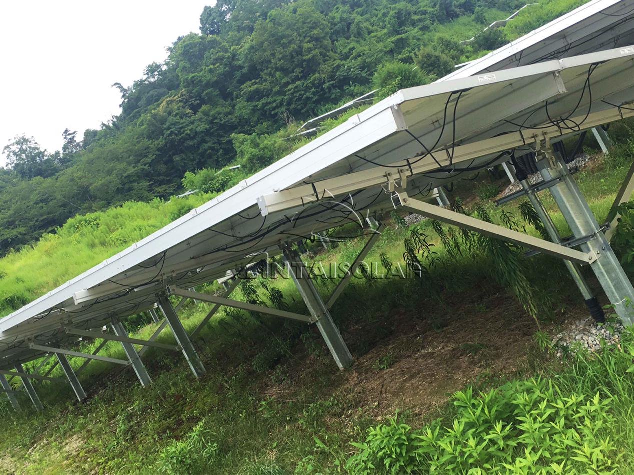 據(jù)介紹,該項(xiàng)目位于日本香川縣,裝機(jī)量為10MW,綜合項(xiàng)目所在地高爾夫球場(chǎng)的地形評(píng)估和安全評(píng)估,由安泰提供安裝簡(jiǎn)單,美觀(guān)耐用的幾字樁坡地東西可調(diào)支架解決方案。該支架采用單立柱設(shè)計(jì),能很好地適應(yīng)山地坡度地形,同時(shí)有效降低了材料成本和現(xiàn)場(chǎng)施工工時(shí),相比較其他支架產(chǎn)品,優(yōu)勢(shì)更加明顯;同時(shí),在不破壞植被等原有生態(tài)環(huán)境的條件下,令高爾夫球場(chǎng)的山地得到了資源的高效利用與經(jīng)濟(jì)效益的全面提升。