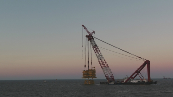 華東院勘測設(shè)計的亞洲離岸距離最遠(yuǎn)的海上升壓站吊裝成功