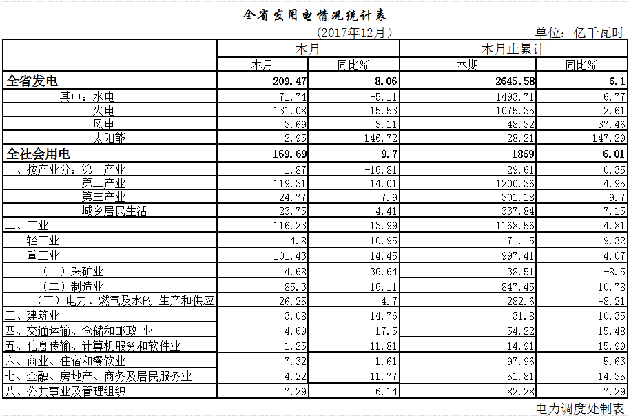 2017年,全省電力行業(yè)嚴格貫徹綠色發(fā)展理念,通過全面放開新能源發(fā)電計劃、優(yōu)先安排水電、對火電機組實行差別電量計劃等措施,確保了增發(fā)的100億千瓦時水電上網(wǎng)消納,全額收購風電、太陽能電量70億千瓦時,組織轉讓電量11.48億千瓦時,關停小火電機組27.6萬千瓦。綜合測算,通過采取以上各種措施,2017年我省減少電煤消耗850萬噸,減排二氧化硫1.2萬噸。