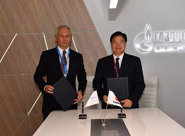 與俄氣石油公司總裁久科夫會晤后簽署合作協議。