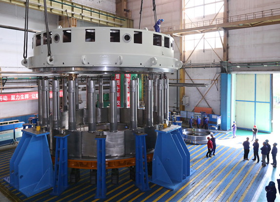 此前,經過各相關單位和職工的不懈努力下,電機公司陸續突破了頂蓋、底環、導葉等導水機構重要部件的焊接、加工難題。水電分廠按照電機公司部署,圍繞首臺頂蓋吊裝工作開展了大量全面精細的準備工作,并進行了“試吊”,為頂蓋一次吊裝成功創造了優勢條件。