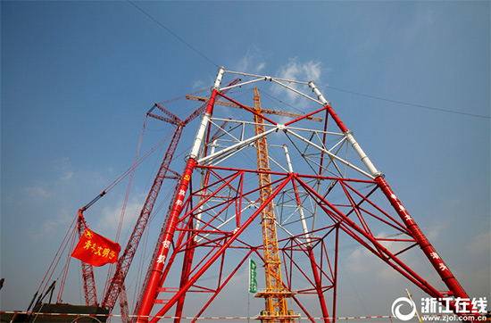 2月6日,舟山500千伏聯(lián)網(wǎng)輸變電工程西堠門大跨越金塘側(cè)建設(shè)工地上,380米高塔項(xiàng)目建設(shè)正在穩(wěn)步推進(jìn),目前已達(dá)112米。據(jù)了解,舟山500千伏聯(lián)網(wǎng)輸變電工程將在舟山的金塘島和冊子島各建一座標(biāo)高380米的輸電高塔(比埃菲爾鐵塔還高56米),計(jì)劃于2018年10月完成立塔。