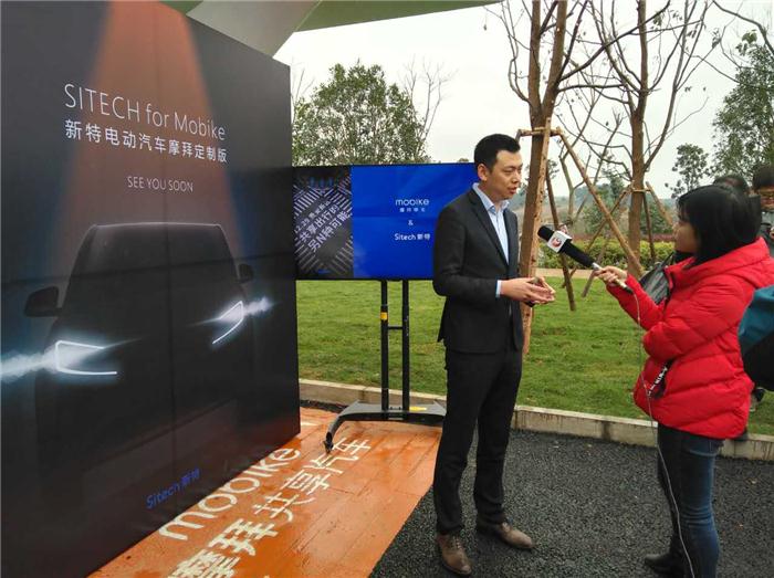 圖為:SITECH新特電動汽車工業有限公司CEO先越先生在上線儀式現場接受采訪