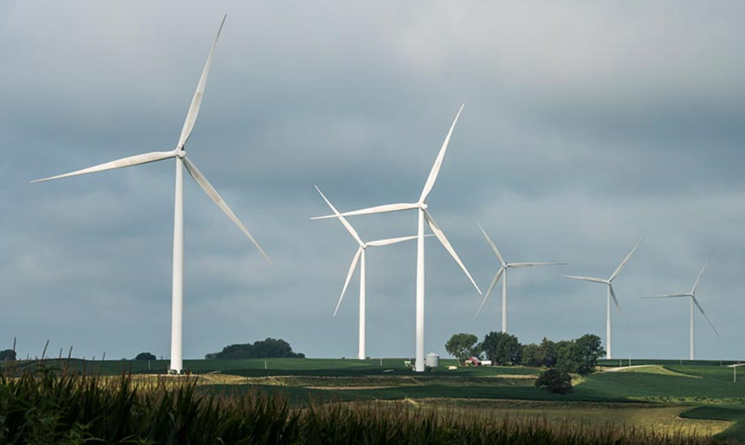 愛荷華州的這家酒店將風力渦輪機延伸到地平線上。美國國家可再生能源實驗室正在提供海量數(shù)據(jù),以幫助確定風機的安裝位置,例如愛荷華州的風機。(Dennis Schroeder攝/ NREL)