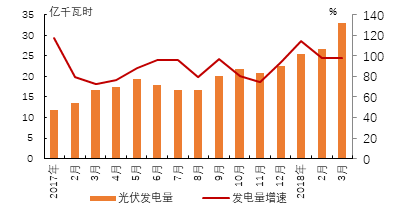 2018年3月,印度光伏發(fā)電量為33.1億千瓦時,同比增長98.2%,保持了高速增長。一季度,印度光伏發(fā)電量85.4億千瓦時,同比增長102.8%。