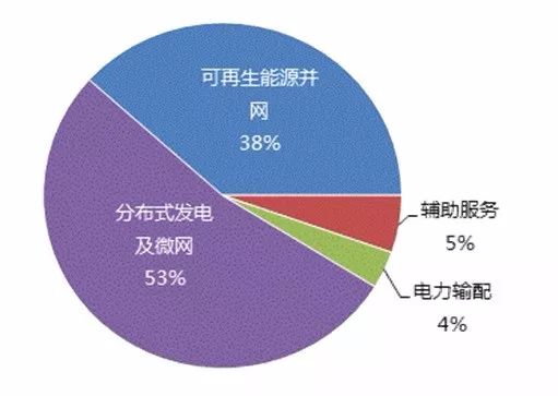 電化學儲能具有設備機動性好、響應速度快、能量密度高和循環效率高等優勢,是當前儲能產業發展和研究的熱點,主要應用在電網輔助服務、可再生能源并網、電力輸配、分布式發電及微網領域。從我國已投運的電化學儲能項目來看,分布式發電及微網領域的裝機規模最大,其余依次為可再生能源并網領域、電力輔助服務領域和電力輸配領域。