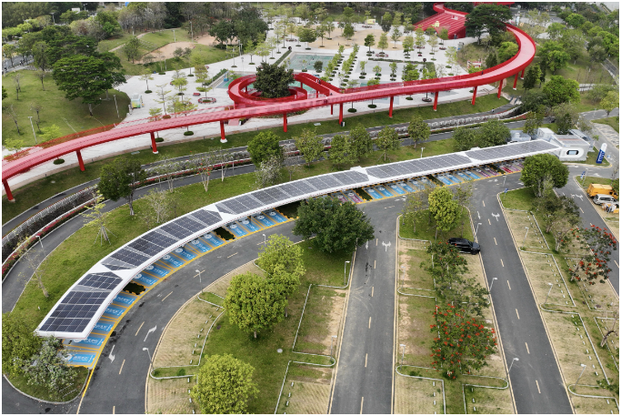 今年以來,青島煉化加快新能源業務發展,截至6月25日,光伏項目發電量超230萬千瓦時,同比大幅增長,其中5月光伏項目發電64.9萬千瓦時,同比增長159.5%,創歷史新高,具有良好經濟效益、生態效益和社會效益。圖為青島煉化停車場車棚光伏發電設施。